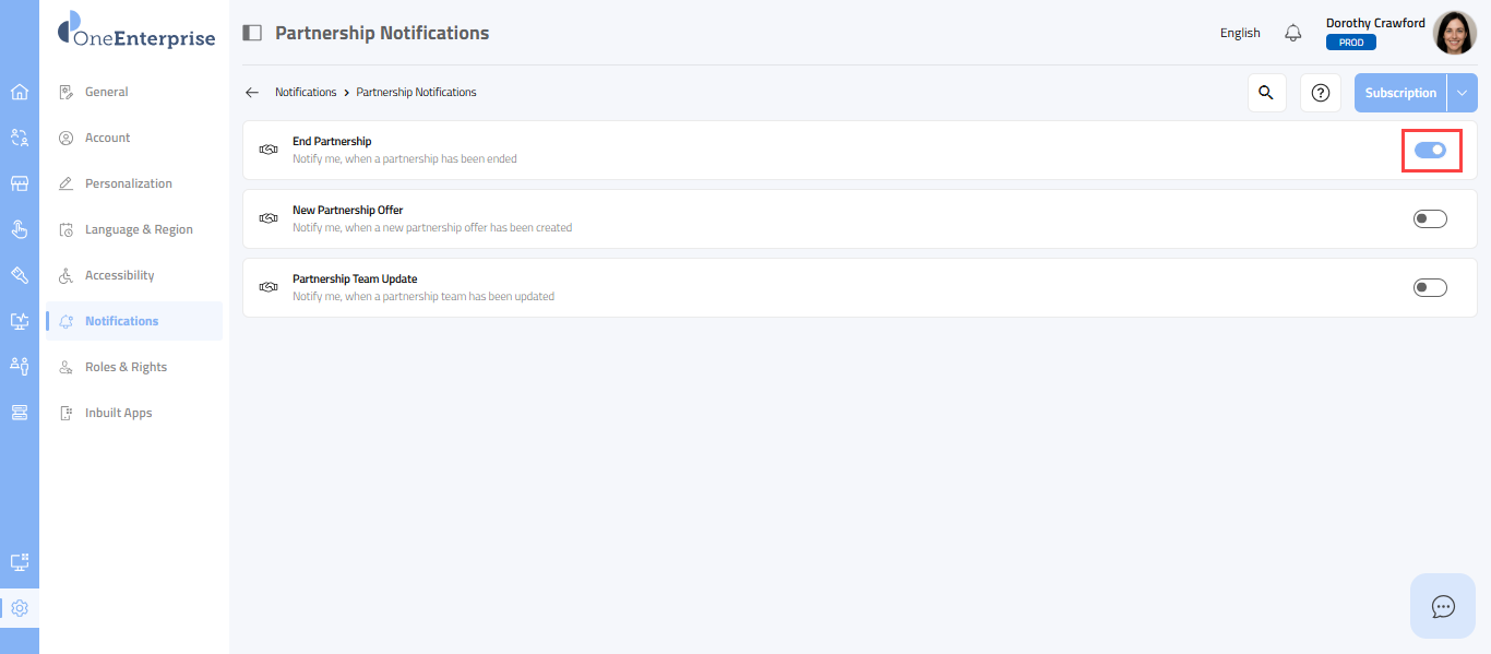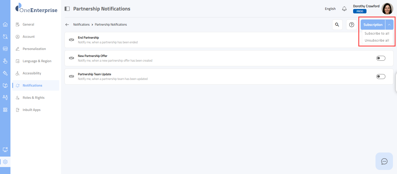 - You can select this option to subscribe to all notification types for the Partnership module.