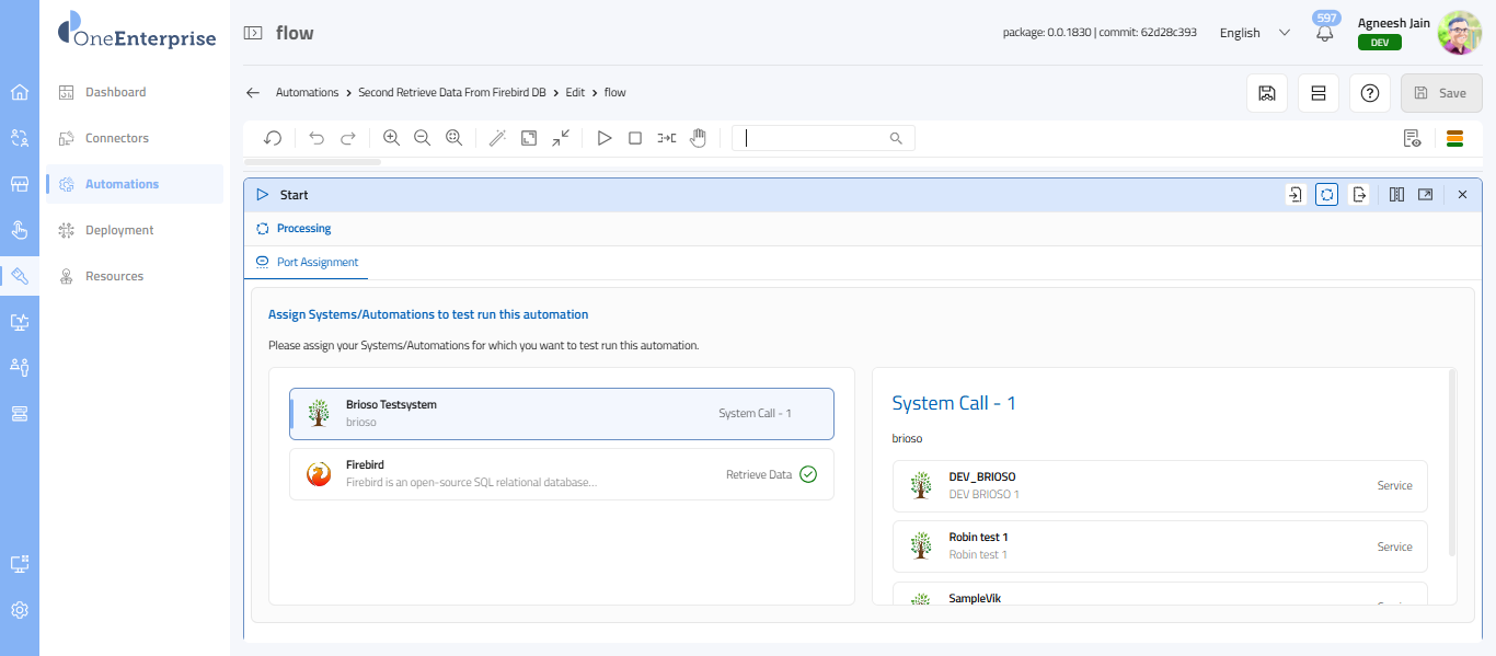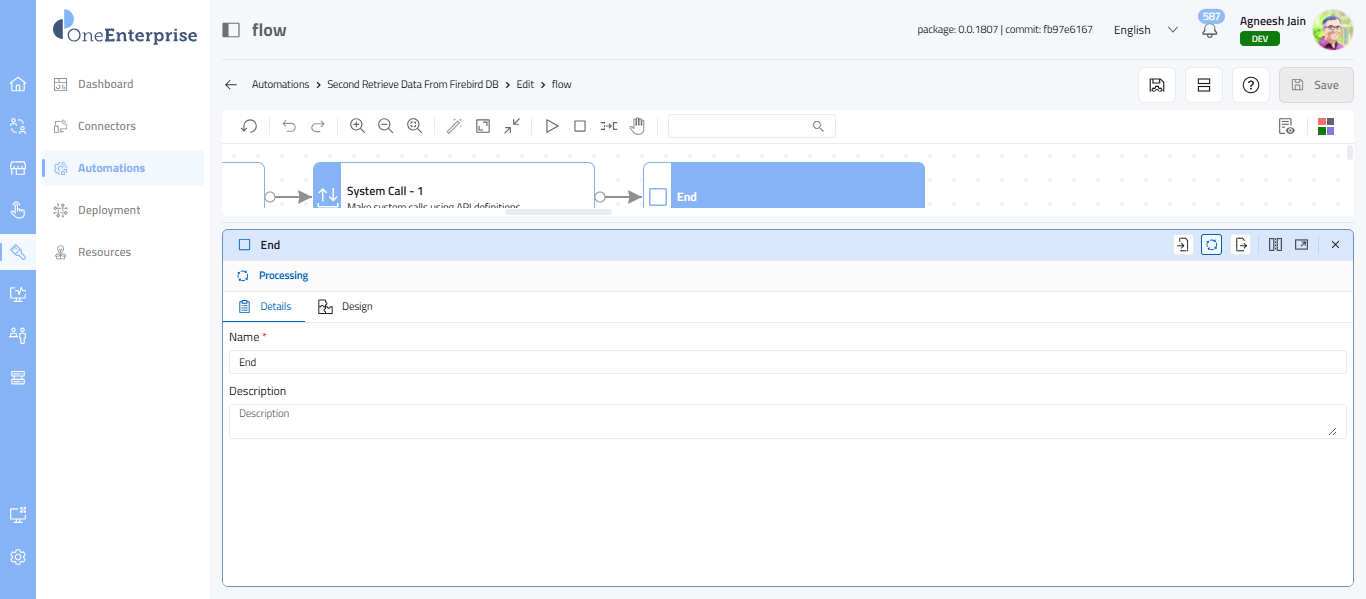 - Purpose: The System Call Unit is an action unit in the Flow Editor/Designer that enables you to invoke internal system-level services or platform operations during execution. This unit is used to perform predefined system actions, retrieve system data, or trigger platform functionalities that are not exposed through external connectors.