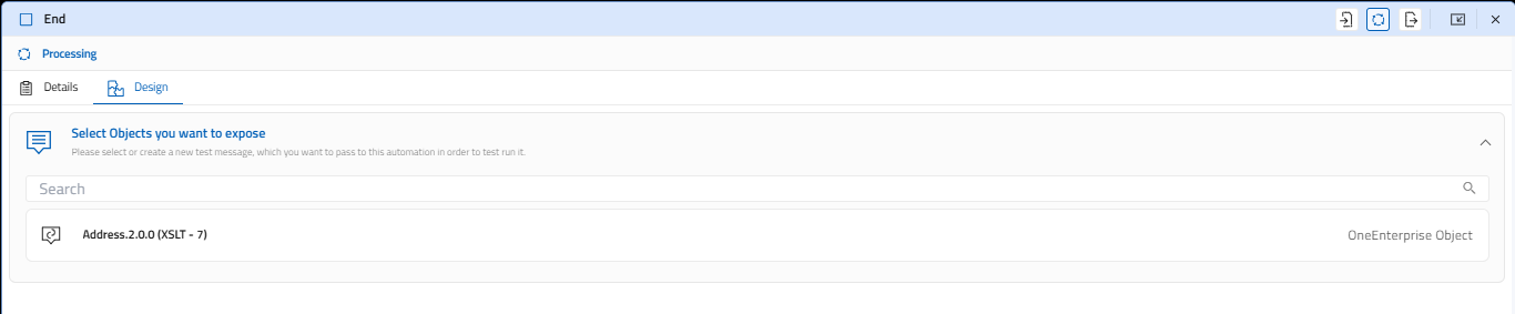 - A Processing section of the panel will display the Details and Design tabs. You can switch between the tabs by clicking on them.
