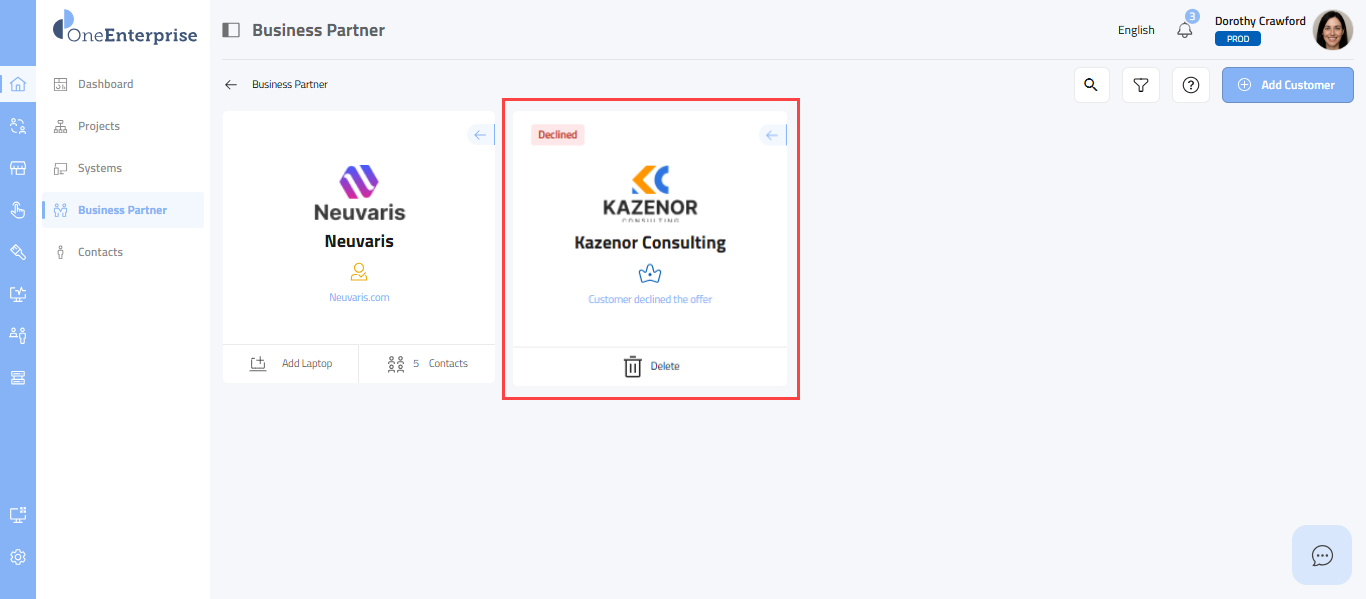 Overview Once you send the partnership offer, you'll see a different status depending on the partnership's progress, such as 'accepted', 'open', 'declined', or 'modified'. These statuses are displayed on the partner's card within your business ...