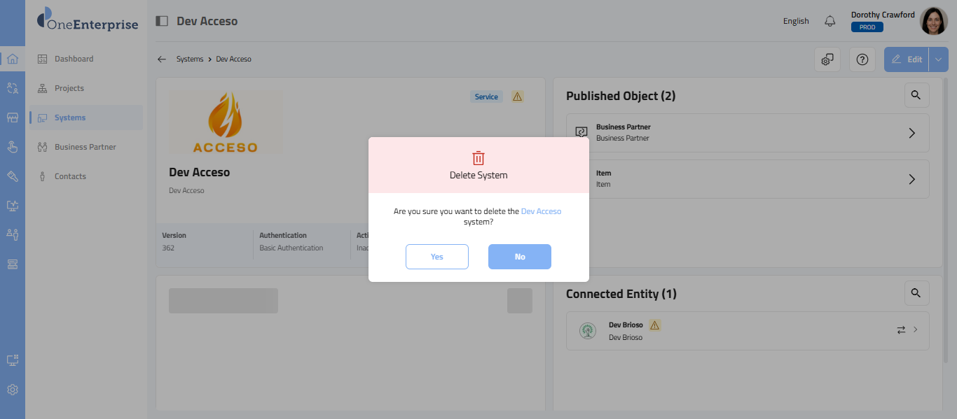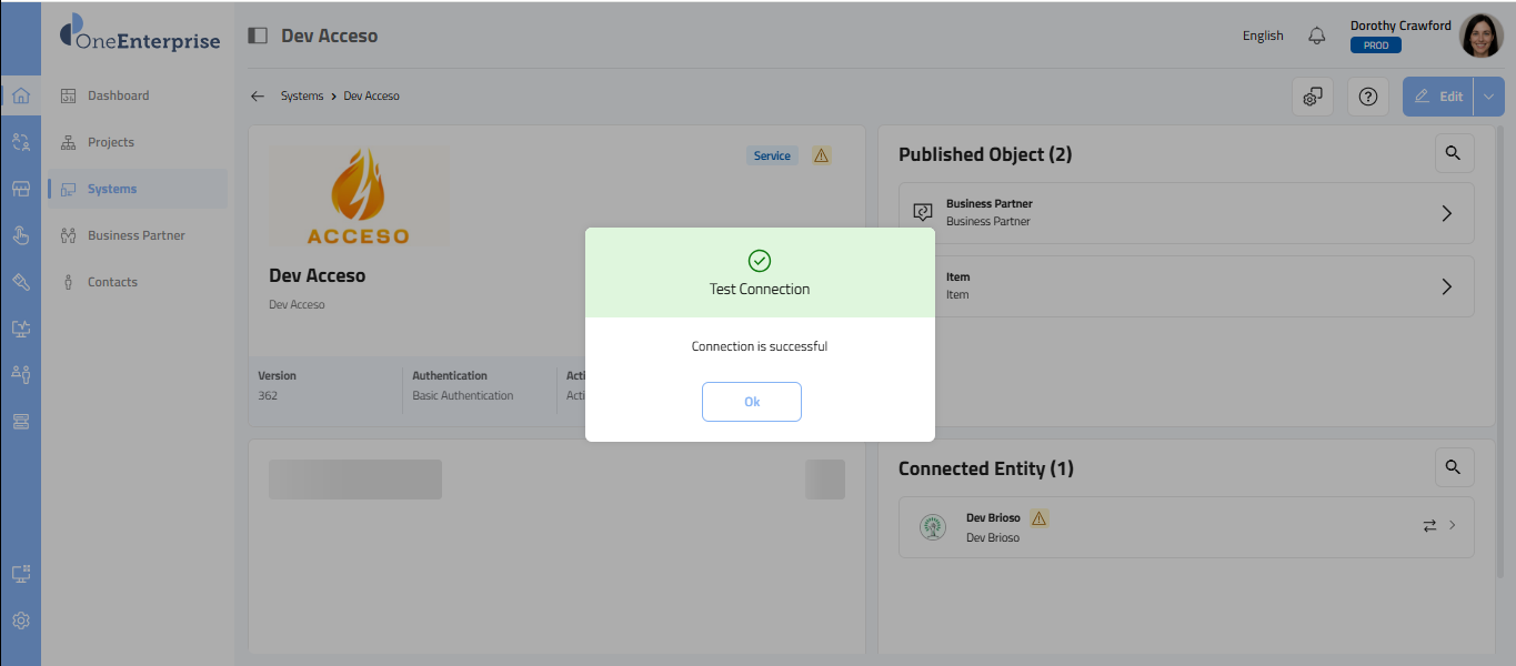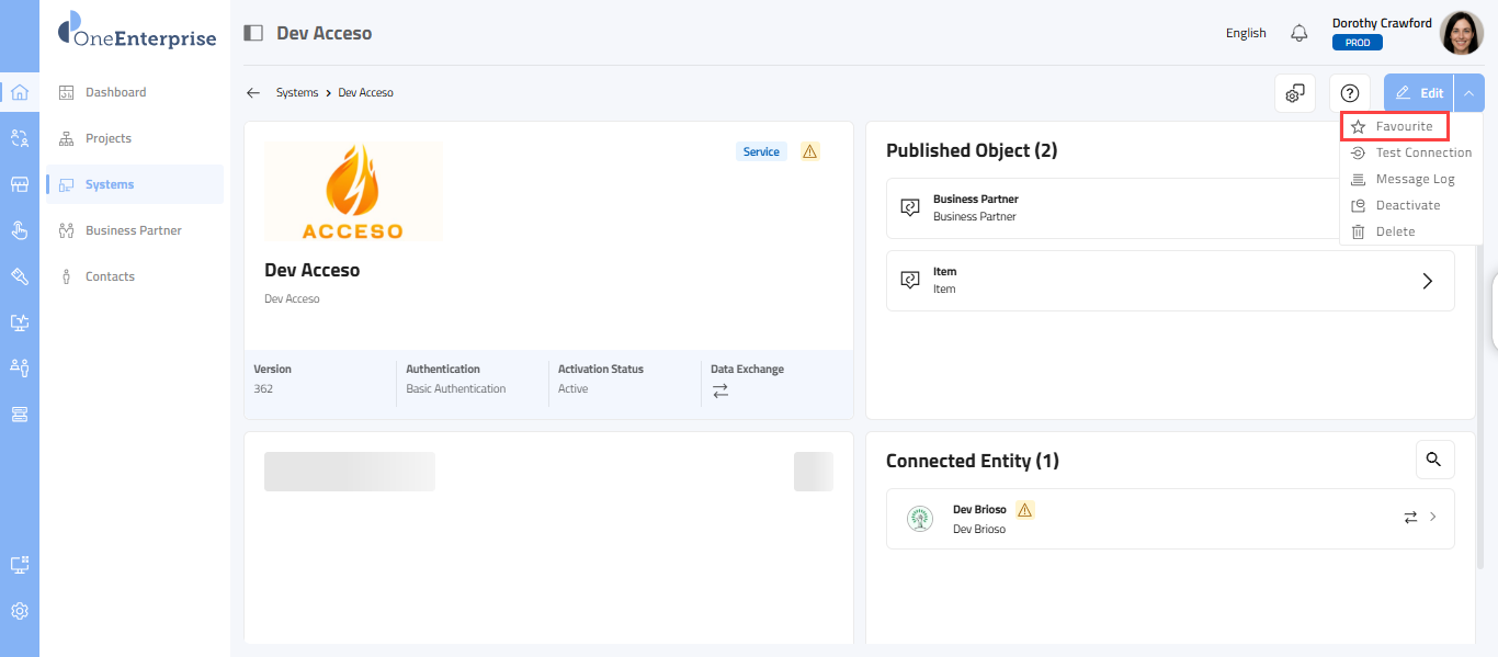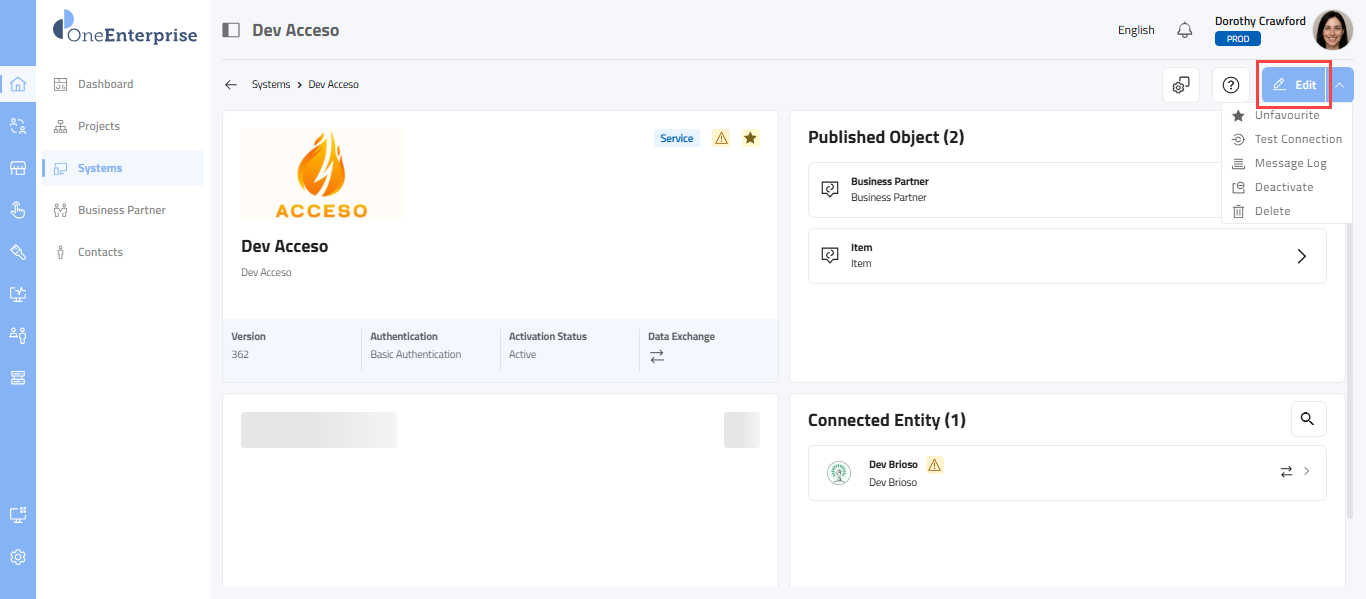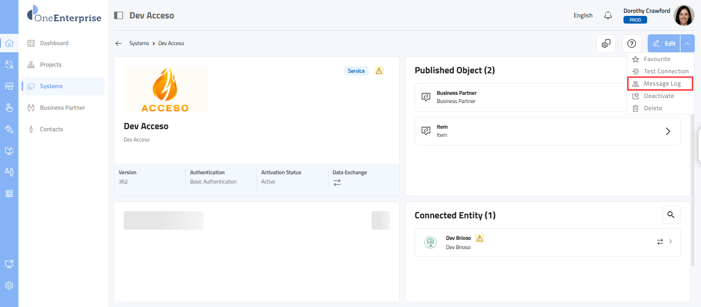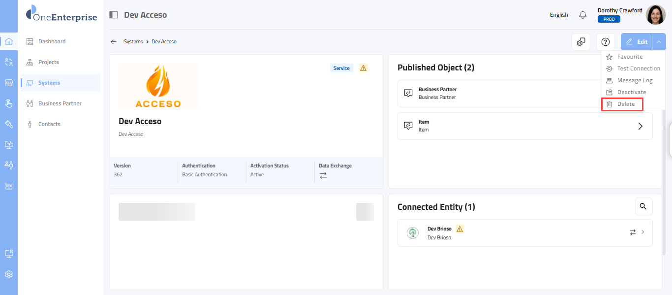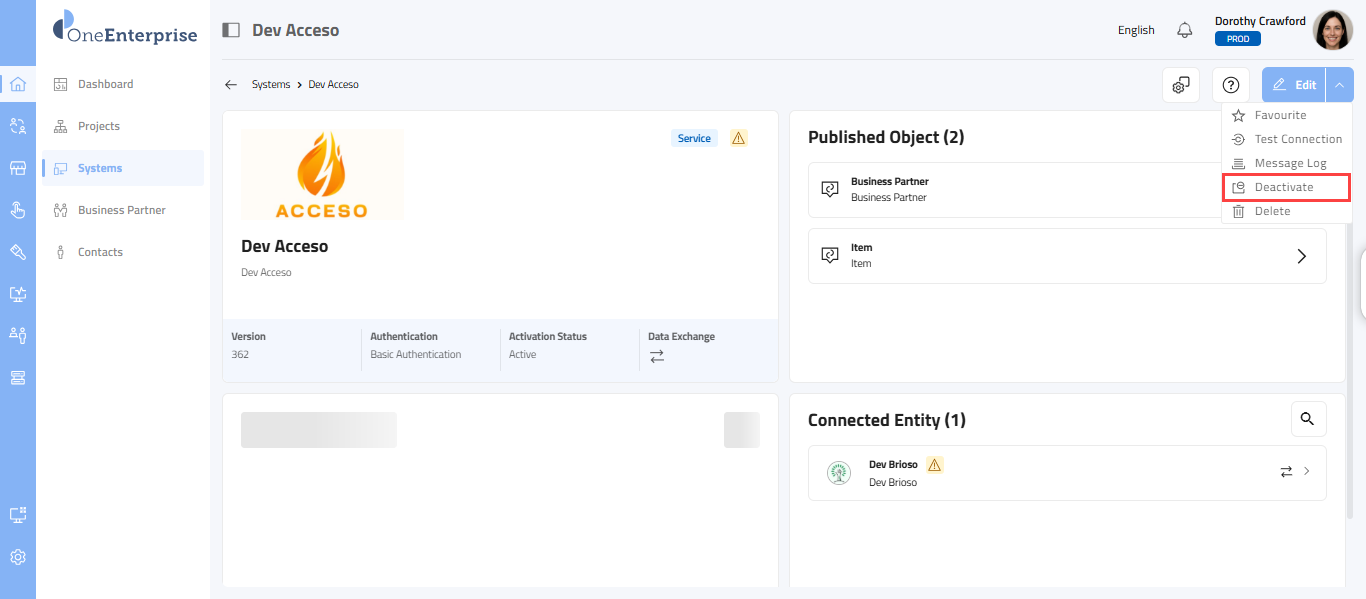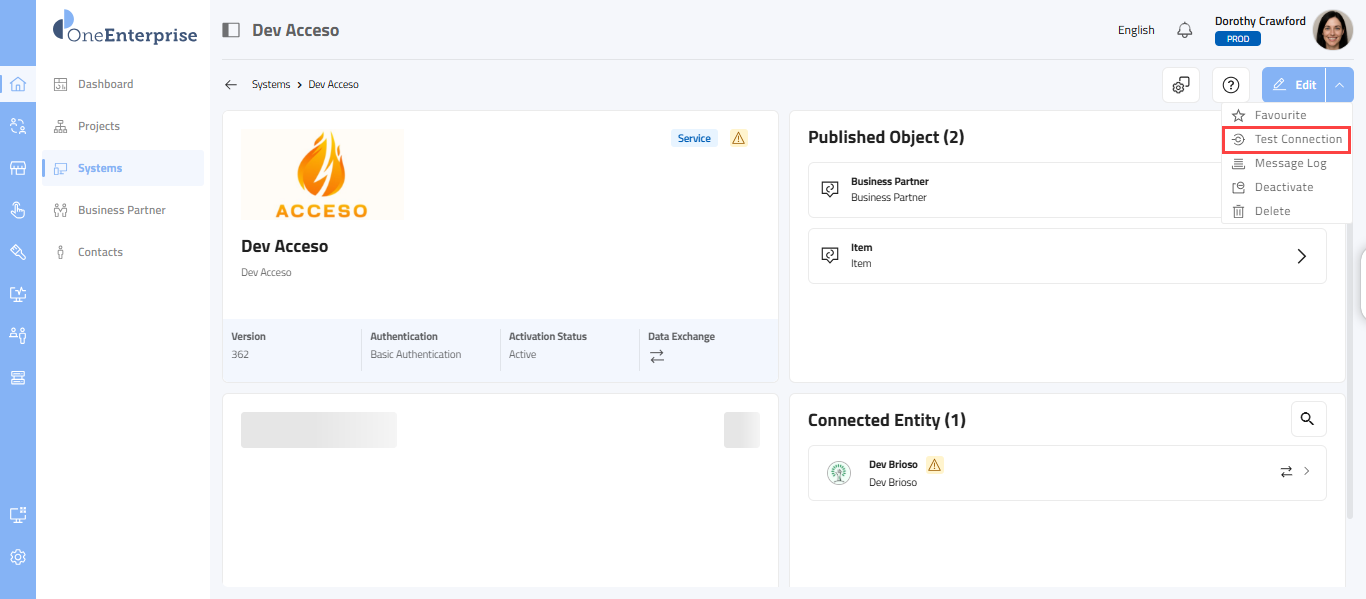 The widget displays a list of entities connected to the selected system. The list will include each entity's name, logo, and description. Each entity is shown on a separate band. If you want to see more details about a connected entity, click on its respective band. Clicking on an entity will take you to the System Overview screen of that system.