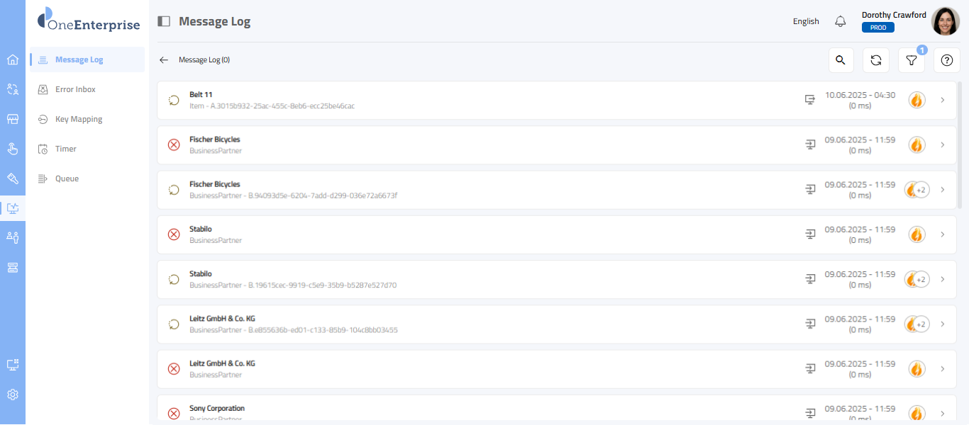 The widget provides a list of the published objects of the system. The system can publish all its objects or the selected ones based on how the system is configured. In this widget, only objects that are published for use will be displayed. Each object is represented on a separate band. Upon clicking the respective band, you will be directed to the object's settings, where you can view and modify the object's settings. Refer to the