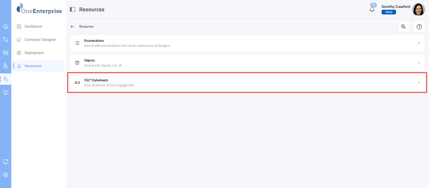 Overview The Resource module in OneEnterprise serves as a centralized area for managing various reusable assets required for integration design and data transformation. It includes the following key sections: Enumerations – Define value mappings and ...
